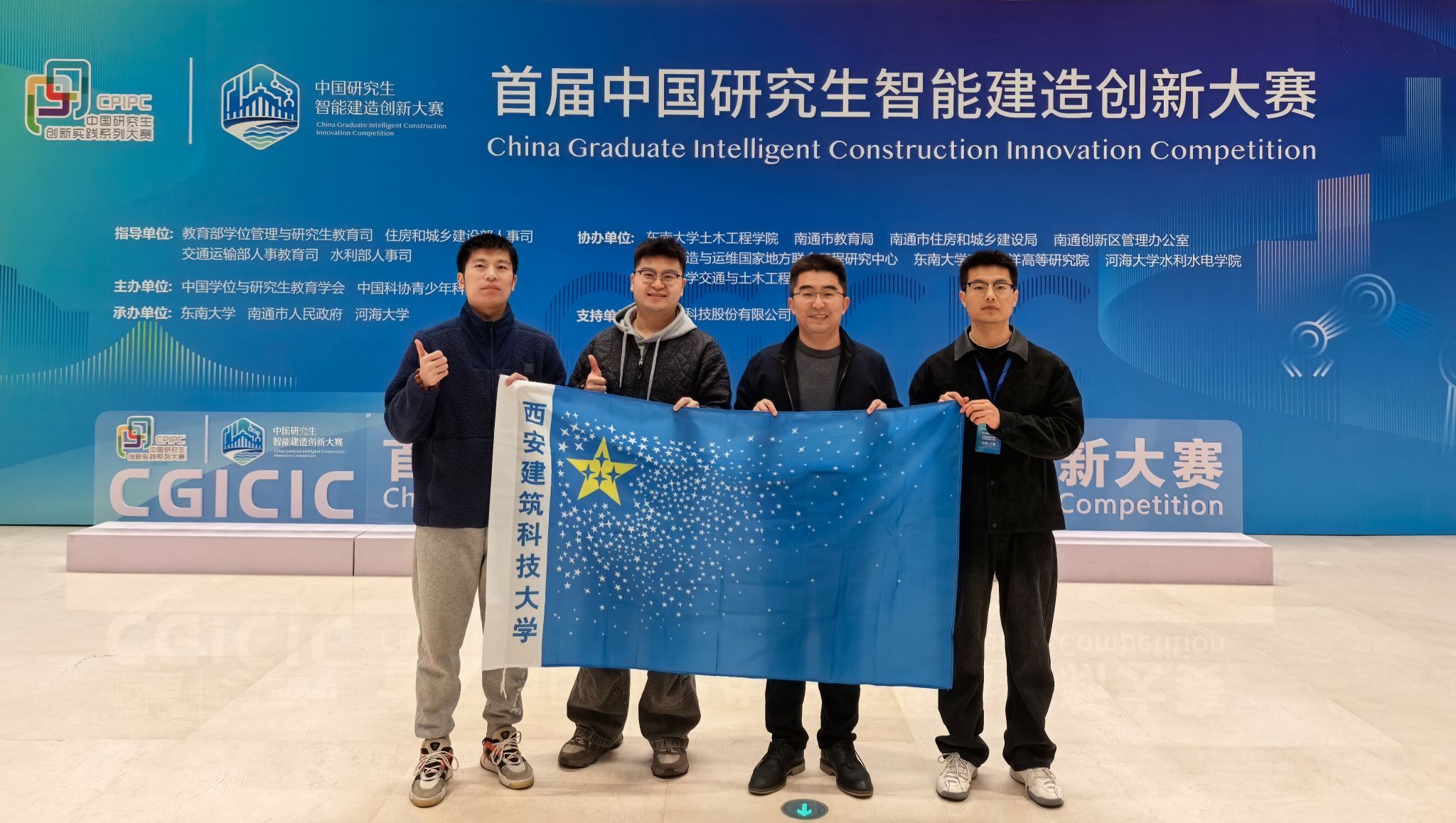 11月28日至29日,首届中国研究生智能建造创新大赛全国总决赛在江苏南通举行。大赛由教育部学位管理与研究生教育司、住房和城乡建设部人事司、交通运输部人事教育司、水利部人事司指导,由中国学位与研究生教育学会和中国科协青少年科技中心联合主办。我校学子组建的2支队伍从晋级总决赛的336支队伍中脱颖而出,荣获“企业揭榜赛道”全国一等奖1项和“常规赛道”全国二等奖1项。